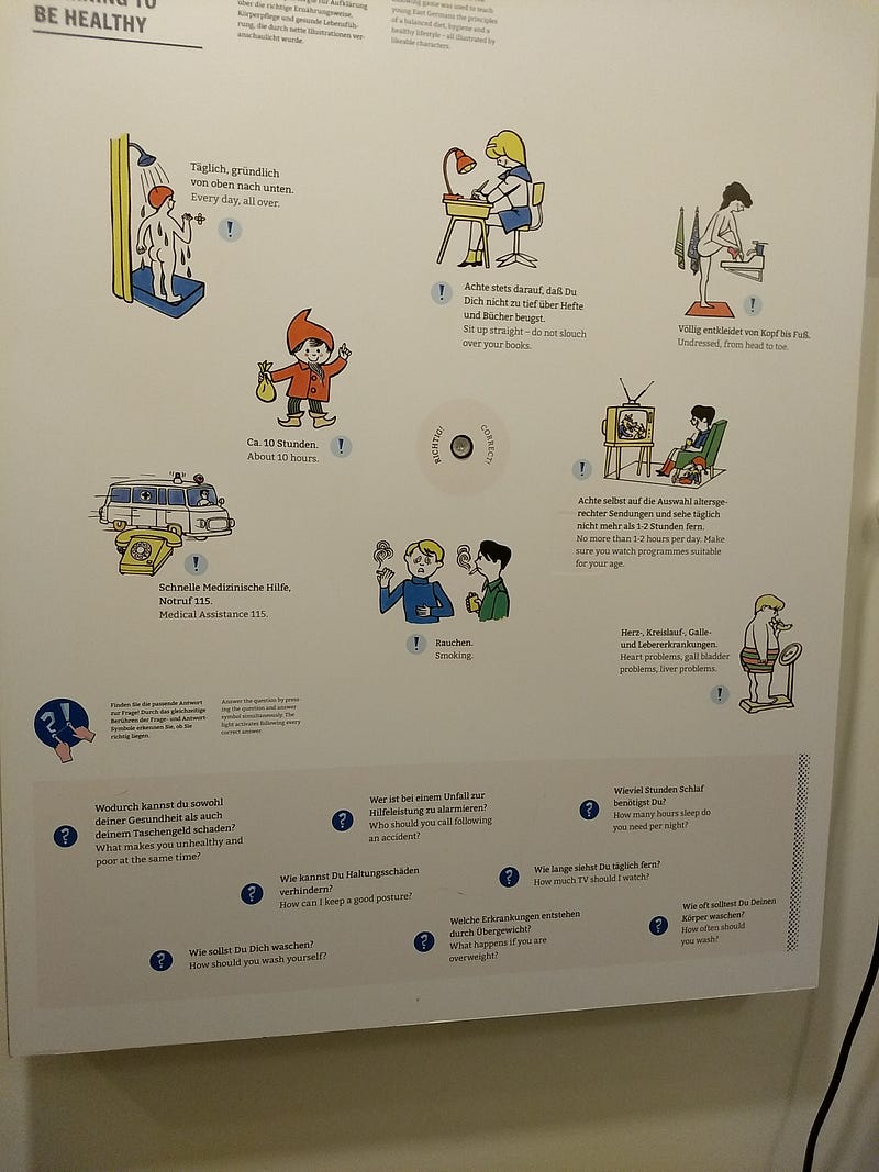 Alma Demokratik Cumhuriyetinde en cok önem verilen konulardan bir tanesi de saglik. Egitim kismini, propogandalaardan bahsederken hizlica gectim ama saglikta oldugu gibi egitimde de, asil amac; saglikli, düzgün birikimli örnek vatandaslar ortaya cikarmak. (Birikim özgürlük getirmeyecek sekilde)