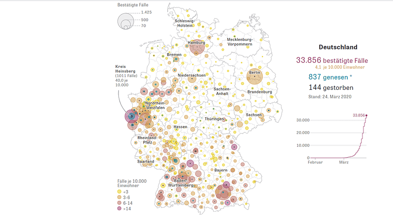 Senaryoya göre, hasta olan kisi farkinda olmadigi ve semptom göstermedigi icin hayatina devam edecek. Belki ayni gün Avrupa’ya seyahat edecek ve virüsü buraya tasiyacak. Muhtemelen Almanya’nin kuzeyine. Bu öngörü de kismen dogru cikti. Virüs,Asyali degil ama italya temasli biri tarafindan ilk olarak Kuzey Ren Vestfalya eyaletinde görüldü ve Almanya’nin Kuzeyinde ve Batisinda vakalar patladi.