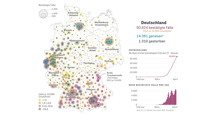 Tüm bu veriler de, Robert Koch Enstitüsünden(RKI)aliniyor. RKI sitesinden de direk ulasilabilir ama orada veri gazetelelerdeki kadar iyi görsellestirilmemis.