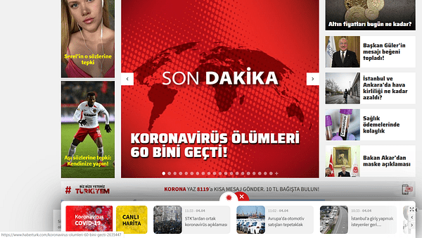 Durum diger ülkelerin gazeteleri icin de gecerli. Hepsine hep orjinal dilde, hem de ingilizce ulasmak mümkün. Örnegin Fransiz ve Ingiliz gazetelerinde de, Korona’nin objektif sekilde anlatildigi bir korona bölümü; istatistiki veriler, bu verilerin degerlendirmesi; korona ile ilgili yorumlar, topluma yansimalari benzer sekidle anlatiliyor.