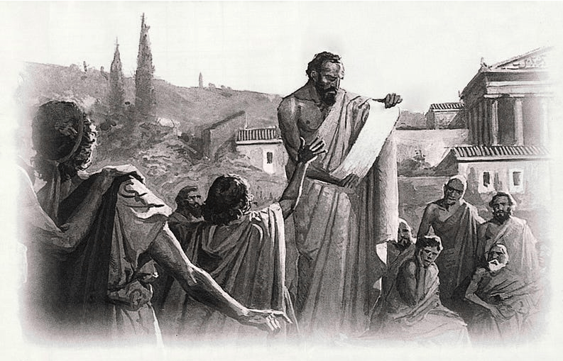 In such a system, where everyone has a say, the poor begin to seek justice against the rich and see them as enemies. Over time, when disagreements reach a point of no return, the majority—the poor—choose someone to lead them.