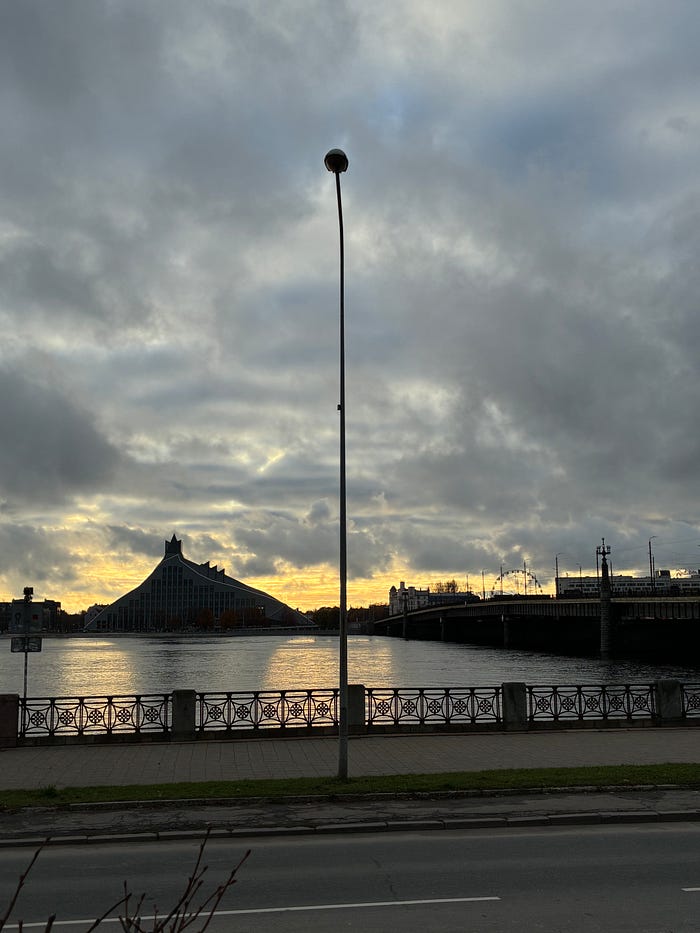 Önceki gittiğimde orada olmayan yeni bir yapı vardı. Nehrin kenarında yükselen Letonya Ulusal Kütüphanesi. Camdan bir dağ gibi, ana köprünün yanında, şehrin silüetine ortak olmuş, sembolleşmeyi başarmış. Işık kulesi diyorlarmış halk arasında. İçeri girdiğinizde sanki zaman yavaşlıyor ve dünyanın tüm dertlerinden, sorunlarından, havanın soğukluğunundan uzaklaşıyorsunuz. Yine geçmişle geleceği bağlayan bir köprü gibi.